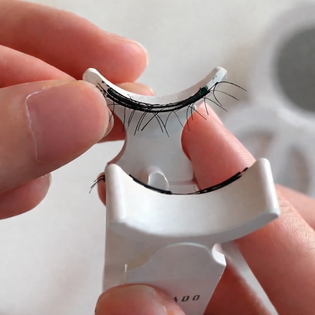 Gently hover the lash near your lash line. The magnets will snap on from a safe distance. Completely beginner-proof.